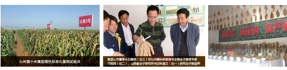 近年來,對沁州黃谷子進行了“等離子處理”、“提純復壯”“抗病植株培育”等一系列科學研究,培育了“沁03049、沁04108、沁96012”等優質品種。為確保沁州黃小米的優良品質,我公司大力推行標準化生產,制定出《沁州黃谷子良種無公害繁育技術規程》、《綠色沁州黃谷子生產基地無公害控制措施》并獲得山西省科學技術廳“科學技術成果獎”。